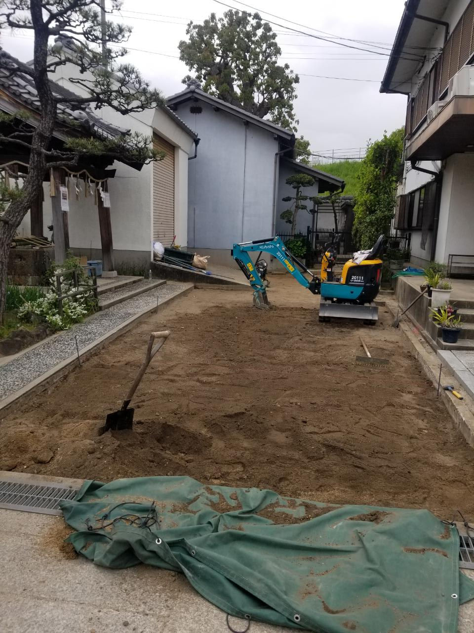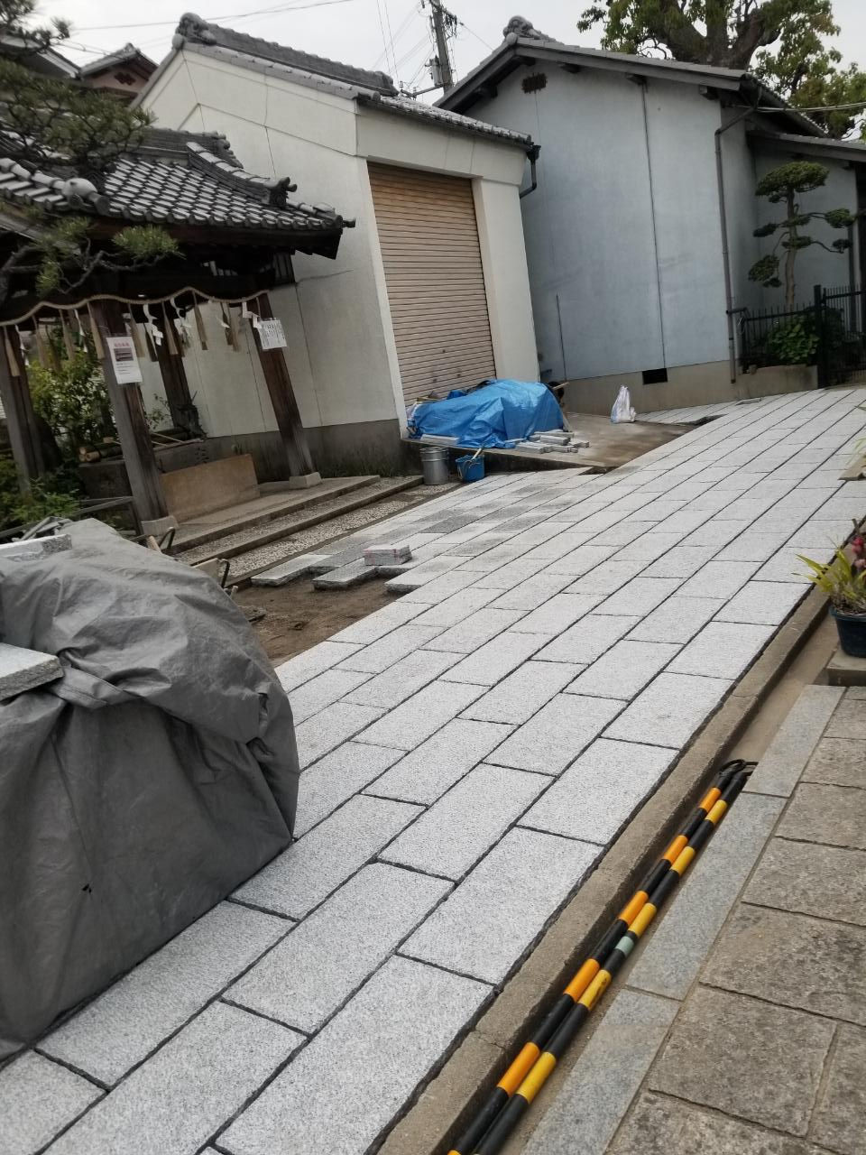 社務所前を石畳にする工事が完成間近となりました。これで土が流れることも無く雨の日でも泥濘状態にならず、参拝者の方が足を取られることも無いはずで御座います。毎年の配管が砂で詰まる事を防いでくれるはずです、皆様のご協力有り難う御座いました。